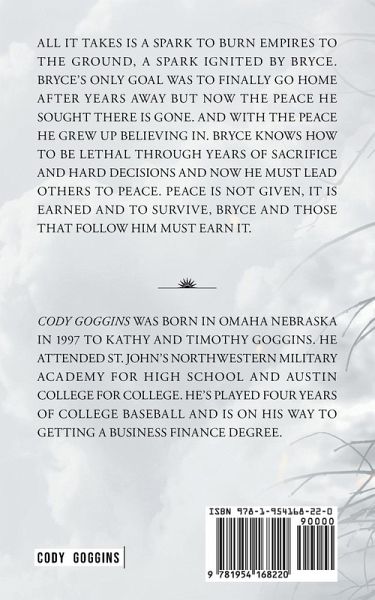 All it takes is a spark to burn empires to the ground, a spark ignited by Bryce. Bryce's only goal was to finally go home after years away but now the peace he sought there is gone. And with the peace he hoped to find gone, the only way to survive is to be more lethal than the soldiers he grew up believing in. Bryce knows how to be lethal through years of sacrifice and hard decisions and now he must lead others to peace. Peace is not given, it is earned and to survive, Bryce and those that follow him must earn it.