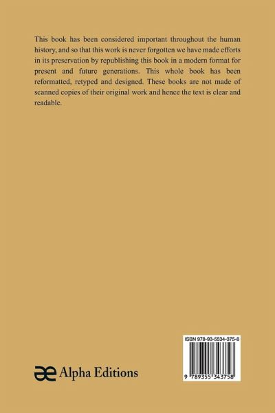 This book has been considered important throughout the human history, and so that this work is never forgotten we have made efforts in its preservation by republishing this book in a modern format for present and future generations. This whole book has been reformatted, retyped and designed. These books are not made of scanned copies and hence the text is clear and readable.