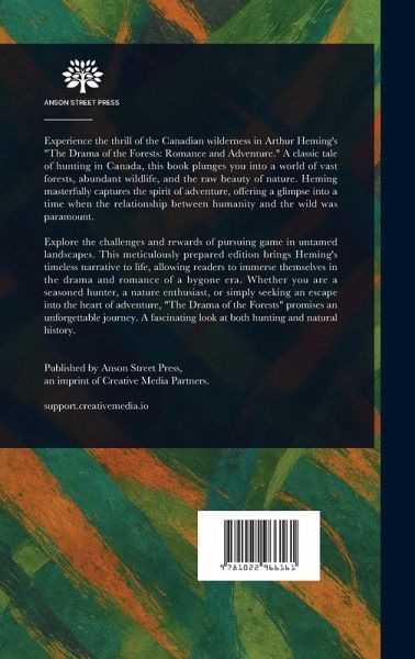 Experience the thrill of the Canadian wilderness in Arthur Heming's "The Drama of the Forests: Romance and Adventure." A classic tale of hunting in Canada, this book plunges you into a world of vast forests, abundant wildlife, and the raw beauty of nature. Heming masterfully captures the spirit of adventure, offering a glimpse into a time when the relationship between humanity and the wild was paramount. Explore the challenges and rewards of pursuing game in untamed landscapes. This meticulously prepared edition brings Heming's timeless narrative to life, allowing readers to immerse themselves in the drama and romance of a bygone era. Whether you are a seasoned hunter, a nature enthusiast, or simply seeking an escape into the heart of adventure, "The Drama of the Forests" promises an unforgettable journey. A fascinating look at both hunting and natural history. This work has been selected by scholars as being culturally important, and is part of the knowledge base of civilization as we know it. This work is in the public domain in the United States of America, and possibly other nations. Within the United States, you may freely copy and distribute this work, as no entity (individual or corporate) has a copyright on the body of the work. Scholars believe, and we concur, that this work is important enough to be preserved, reproduced, and made generally available to the public. We appreciate your support of the preservation process, and thank you for being an important part of keeping this knowledge alive and relevant.