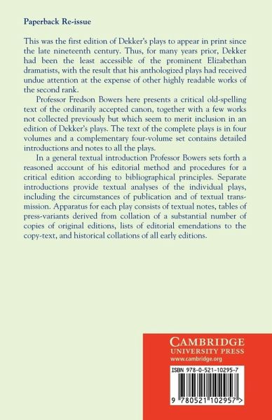 This was the first edition of Dekker's plays to appear in print since the late nineteenth century.