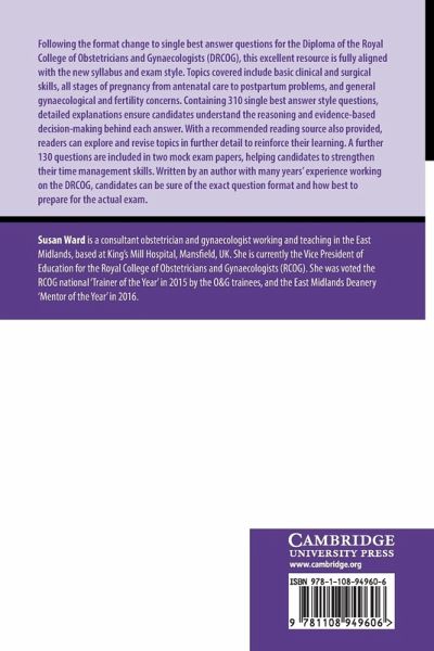 1. Introduction 2. The DRCOG exam 3. Curriculum module 1: the individual seeking fertility regulation and sexual health assessment 4. Curriculum module 2: the couple with subfertility 5. Curriculum module 3: the woman in early pregnancy 6. Curriculum module 4: the pregnant woman 7. Curriculum module 5: the peripartum woman and the neonate 8. Curriculum module 6: the girl/woman presenting with emergency or urgent gynaecological problems 9. Curriculum module 7: the girl/woman presenting with non-urgent gynaecological problems 10. Answers for module 1: the individual seeking fertility regulation and sexual health assessment 11. Answers for module 2: the couple with subfertility 12. Answers for module 3: the woman in early pregnancy 13. Answers for module 4: the pregnant woman 14. Answers for module 5: the peripartum woman and the neonate 15. Answers for module 6: the girl/woman presenting with emergency or urgent gynaecological problems 16. Answers for module 7: the girl/woman presenting with non-urgent gynaecological problems 17. Exam paper 1: single best answer questions 18. Exam paper 1: answers 19. Exam paper 2: single best answer questions 20. Exam paper 2: answers Appendix 1. DRCOG syllabus Appendix 2. Useful web addresses Index.