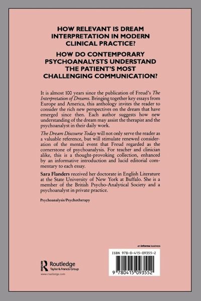 The Dream Discourse Today is the first historical and theoretical survey of its subject and the classic nature of the papers it includes will make it a first-class work of reference for psychoanalysts and psychotherapists of all schools, whether in practice or still training. It should be of especial interest to those who teach courses on the theory of technique, since the place of dream analysis is almost certain to be one of the central topics in such courses.