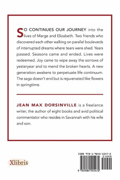 So continues our journey into the lives of Marge and Elizabeth. Two friends who discovered each other walking on parallel boulevards of interrupted dreams where tears were shed. Years passed. Seasons came and ended. Lives were redeemed. Joy came to wipe away the sorrows of yesteryear and to mend the broken hearts. A new generation awakens to perpetuate life continuum. The saga doesn't end but is rejuvenated like flowers in springtime.
