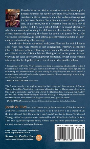 Dorothy Word, an African American woman dreaming of a hopeful future for her people, advocated for African American scientists, athletes, inventors, and others often not recognized for their contributions. She writes not as noted scholar, politician, or journalist, but as a layperson from the back row of public visibility. As a retired teacher in several elementary schools she continued to lobby for children and their families. She was an activist passionately pursuing the dream for equity and justice for all. Her voice needs to be heard, and Jacob offers a perceptive framework for an intercultural understanding of her message. Dorothy first became acquainted with Jacob Elias and his wife Lillian in 2001 when they were pastors of her congregation, Parkview Mennonite Church, Kokomo, Indiana. Following her retirement Dorothy wrote newspaper columns for the Kokomo Tribune. Having served as her pastor for four years and ten years later exercising power of attorney for her as she receded into dementia, Jacob gathered forty-one of her articles into this volume.