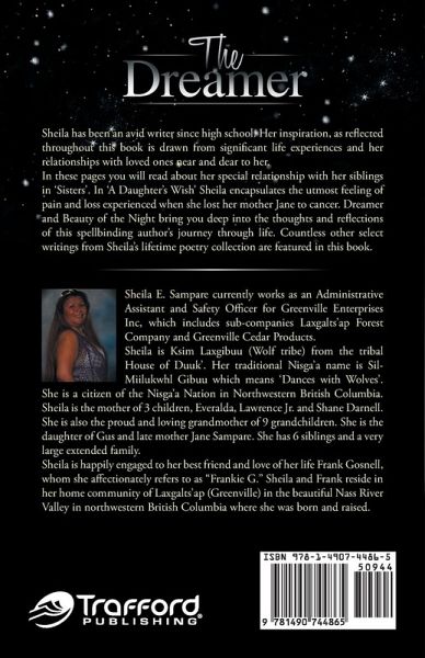 Sheila has been an avid writer since high school. Her inspiration, as reflected throughout this book is drawn from significant life experiences and her relationships with loved ones near and dear to her. In these pages you will read about her special relationship with her siblings in 'Sisters'. In 'A Daughter's Wish' Sheila encapsulates the utmost feeling of pain and loss experienced when she lost her mother Jane to cancer. Dreamer and Beauty of the Night bring you deep into the thoughts and reflections of this spellbinding author's journey through life. Countless other select writings from Sheila's lifetime poetry collection are featured in this book.