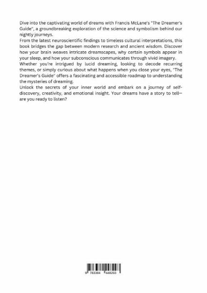 What do your dreams reveal about your mind and emotions?Dive into the captivating world of dreams with Francis McLane's "The Dreamer's Guide", a groundbreaking exploration of the science and symbolism behind our nightly journeys.From the latest neuroscientific findings to timeless cultural interpretations, this book bridges the gap between modern research and ancient wisdom. Discover how your brain weaves intricate dreamscapes, why certain symbols appear in your sleep, and how your subconscious communicates through vivid imagery.Whether you're intrigued by lucid dreaming, looking to decode recurring themes, or simply curious about what happens when you close your eyes, "The Dreamer's Guide" offers a fascinating and accessible roadmap to understanding the mysteries of dreaming.Unlock the secrets of your inner world and embark on a journey of self-discovery, creativity, and emotional insight. Your dreams have a story to tell-are you ready to listen?