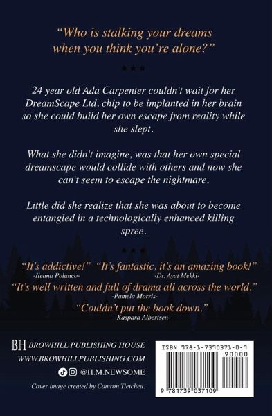 24-year-old Ada Carpenter couldn't wait for her DreamScape Ltd. chip to be implanted in her brain so she could build her own escape from reality while she slept. What she didn't imagine, was that her own special dreamscape would collide with others and now she can't seem to escape the nightmare. Little did she realize that she was about to become entangled in a technologically enhanced killing spree.