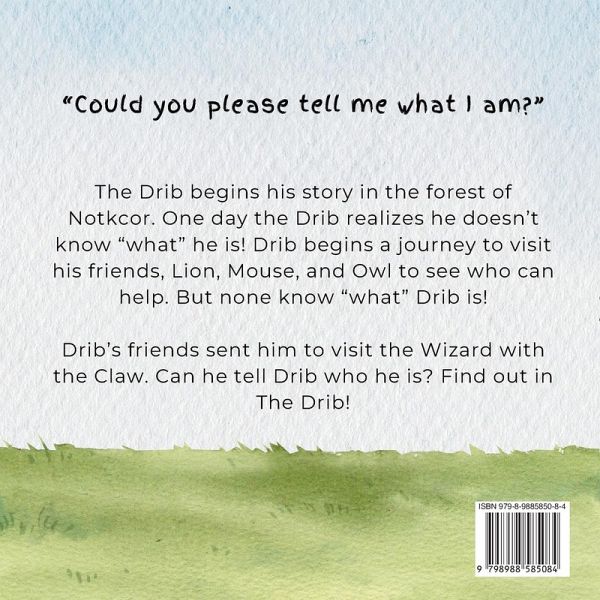 The Drib begins his story in the forest of Notkcor. One day the Drib realizes he doesn't know "what" he is! Drib begins a journey to visit his friends, Lion, Mouse, and Owl to see who can help. But none know "what" Drib is! Drib's friends sent him to visit the Wizard with the Claw. Can he tell Drib who he is? Find out in The Drib!