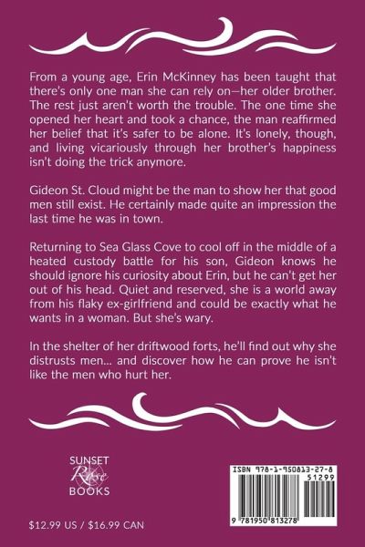 From a young age, Erin McKinney has been taught that there's only one man she can rely on-her older brother. The rest just aren't worth the trouble. The one time she opened her heart and took a chance, the man reaffirmed her belief that it's safer to be alone. It's lonely, though, and living vicariously through her brother's happiness isn't doing the trick anymore. Gideon St. Cloud might be the man to show her that good men still exist. He certainly made quite an impression the last time he was in town. Returning to Sea Glass Cove to cool off in the middle of a heated custody battle for his son, Gideon knows he should ignore his curiosity about Erin, but he can't get her out of his head. Quiet and reserved, she is a world away from his flaky ex-girlfriend and could be exactly what he wants in a woman. But she's wary. In the shelter of her driftwood forts, he'll find out why she distrusts men... and discover how he can prove he isn't like the men who hurt her.