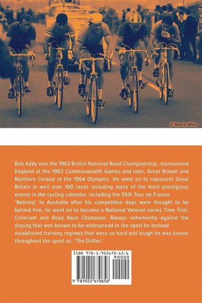 Bob Addy won the 1963 British National Road Championship, represented England at the 1962 Commonwealth Games and later, Great Britain and Northern Ireland at the 1964 Olympics. He went on to represent Great Britain in well over 100 races including many of most prestigious events in the cycling calendar, including the 55th Tour de France. 'Retiring' to Australia after his competitive days were thought to be behind him, he went on to become a National Veteran series Time Trial, Criterium and Road Race Champion. Always vehemently against the doping that was known to be widespread in the sport he instead established training regimes that were so hard and tough he was known throughout the sport as, 'The Driller'.