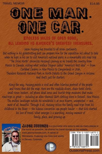 One Man. One Car. And Endless Miles of Open Road, All Leading to America's Greatest Treasures. Jason Hussong has traveled to all seven continents. But nothing in his globetrotting past can prepare him for the expedition he's about to take when he hops in his car to visit America's national parks in a remarkable solo road trip. The Drive North chronicles Hussong's journey as he travels the country from Mexico to Canada, visiting what Wallace Stegner called "America's best idea"-from Carlsbad Caverns in New Mexico to Canyonlands in Utah, Theodore Roosevelt National Park in North Dakota to Grand Canyon in Arizona. And that's just for starters. Along the way, Hussong paints a vivid and often hilarious portrait of the people and towns that dot the map. Here are the roadside diners, chain-hotel clerks, small-town hookers, cell phone dead zones and tourist-trap museums that make road trips so great-including an alien-themed S&M clothing store in Roswell, New Mexico. The endless landscape outside his windshield is at once bizarre, unexpected-and, most of all, beautiful. Through it all, Hussong relives the family road trips from his childhood in the Beast-the hideous conversion van people-hauler-that kick-started his love of travel. What emerges is a searching, moving memoir of family, place, and growing up.