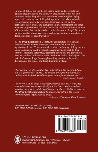 American Drug Policy and the Legalization Debate - James A Inciardi The Case for Legalization - Ethan A Nadelmann The Case - James A Inciardi and Duane C McBride Against Legalization A Model Legalization Proposal - Richard B Karel Beyond the War on Drugs - Steven Wisotsky War is Not the Answer - Karst J Besteman Why MDMA Should Not Have Been Made Illegal - Marsha Rosenbaum and Rick Doblin Marijuana Legalization - Douglas McVay The Time is Now The Us Drug Problem and the US Drug Culture - Steven Jonas A Public Health Solution Hidden Paradigms of Morality in Debates About Drugs - John Jay Rouse and Bruce D Johnson Historical and Policy Shifts in British and American Drug Policies
