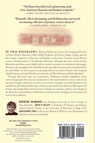 In this biography, Barbara McManus recovers the intriguing life story of Grace Harriet Macurdy (1866-1946), Professor of Greek at Vassar College and the first woman classicist to focus her scholarship on the lives of ancient Greco-Roman women. Fondly known as "the Drunken Duchess," although she never drank alcohol, Macurdy came from a poor family with no social, economic, or educational advantages. Moreover, she struggled with disability for decades after becoming almost totally deaf in her early fifties. Yet she became an internationally known Greek scholar with a long list of publications and close friends as renowned as Gilbert Murray and John Masefield. Through Macurdy's eyes and experiences, McManus examines significant issues and developments from the late nineteenth to the mid-twentieth century, such as the opening of higher education to women, the erosion of gender and class barriers in the professions, the delicate balancing act between personal and professional life required of women, the marginalized role of women's colleges in academic politics, and changes in the discipline and profession of Classics in response to the emerging role of women and new social conditions.