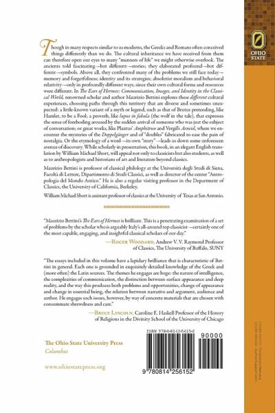 Though in many respects similar to us moderns, the Greeks and Romans often conceived things differently than we do. The cultural inheritance we have received from them can therefore open our eyes to many "manners of life" we might otherwise overlook. The ancients told fascinating-but different-stories; they elaborated profound-but different-symbols. Above all, they confronted many of the problems we still face today-memory and forgetfulness; identity and its strategies; absolutist moralism and behavioral relativity-only in profoundly different ways, since their own cultural forms and resources were different. In The Ears of Hermes: Communication, Images, and Identity in the Classical World, renowned scholar and author Maurizio Bettini explores these different cultural experiences, choosing paths through this territory that are diverse and sometimes unexpected: a little-known variant of a myth or legend, such as that of Brutus pretending, like Hamlet, to be a Fool; a proverb, like lupus in fabula (the wolf in the tale), that expresses the sense of foreboding aroused by the sudden arrival of someone who was just the subject of conversation; or great works, like Plautus' Amphitruo and Vergil's Aeneid, where we encounter the mysteries of the Doppelgänger and of "doubles" fabricated to ease the pain of nostalgia. Or the etymology of a word-its own "story"-leads us down some unforeseen avenue of discovery. While scholarly in presentation, this book, in an elegant English translation by William Michael Short, will appeal not only to classicists but also students, as well as to anthropologists and historians of art and literature beyond classics.