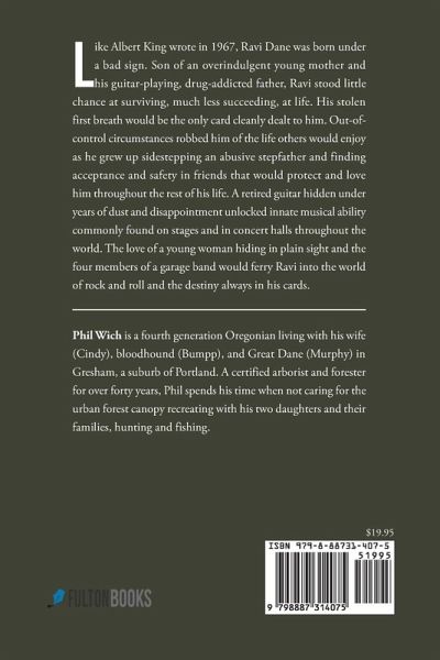 Like Albert King wrote in 1967, Ravi Dane was born under a bad sign. Son of an overindulgent young mother and his guitar-playing, drug-addicted father, Ravi stood little chance at surviving, much less succeeding, at life. His stolen first breath would be the only card cleanly dealt to him. Out-of-control circumstances robbed him of the life others would enjoy as he grew up sidestepping an abusive stepfather and finding acceptance and safety in friends that would protect and love him throughout the rest of his life. A retired guitar hidden under years of dust and disappointment unlocked innate musical ability commonly found on stages and in concert halls throughout the world. The love of a young woman hiding in plain sight and the four members of a garage band would ferry Ravi into the world of rock and roll and the destiny always in his cards.