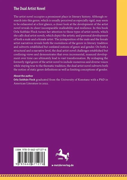 The artist novel occupies a prominent place in literary history. Although research into this genre, which is usually perceived as especially rigid, may seem to be exhausted at a first glance, a closer look at the development of the artist novel reveals its sheer incomparable malleability and resilience. In this book Orla Flock turnes her attention to those types of artist novels, which she calls dual artist novels, which depict the artistic and personal development of both a male and a female artist. The juxtaposition of the male and the female artist narratives reveals both the rootedness of the genre in literary tradition and subverts established but outdated notions of genre and gender. On both a structural and a narrative level, the dual artist novel challenges established but confining views and demonstrates that even incremental, nuanced development over time can ultimately lead to vast transformation. By reshaping the formerly rigid genre of the artist novel to include numerousand diverse voices while staying true to the thematic tradition, the dual artist novel subverts both the notion of static genre definitions as well as limiting conceptions of gender.
