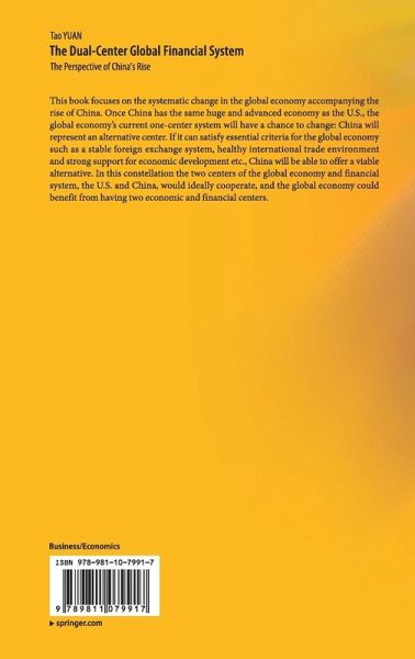 This book focuses on the systematic change in the global economy accompanying the rise of China. Once China has the same huge and advanced economy as the U.S., the global economy's current one-center system will have a chance to change: China will represent an alternative center. If it can satisfy essential criteria for the global economy such as a stable foreign exchange system, healthy international trade environment and strong support for economic development etc., China will be able to offer a viable alternative. In this constellation the two centers of the global economy and financial system, the U.S. and China, would ideally cooperate, and the global economy could benefit from having two economic and financial centers.
