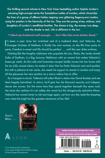 The thrilling second book in New York Times bestselling author Sophie Jordan's amazing new high concept series, The Scandalous Ladies of London, which chronicles the lives of a group of affluent ladies reigning over glittering, Regency-era London, vying for position in the hierarchy of the ton. They are the young wives, widows, and daughters of London's wealthiest families. The drama is big, the money runs deep, and the shade is real. Life is different in the ton.