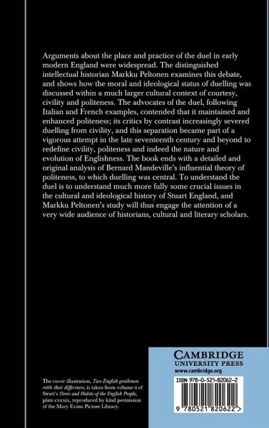Arguments about the place and practice of the duel in early modern England were widespread. The distinguished intellectual historian Markku Peltonen examines this debate, and show how the moral and ideological status of duelling was discussed within a much larger cultural context of courtesy, civility and politeness. The advocates of the duel, following Italian and French examples, contended that it maintained and enhanced politeness; its critics by contrast increasingly severed duelling from civility, and this separation became part of a vigorous attempt in the late seventeenth century and beyond to redefine civility, politeness and indeed the nature and evolution of Englishness. To understand the duel is to understand much more fully some crucial issues in the cultural and ideological history of Stuart England, and Markku Peltonen's study will thus engage the attention of a very wide audience of historians and cultural and literary scholars.