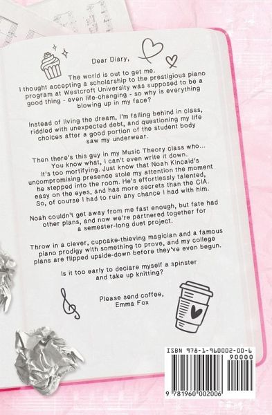Emma Fox is a walking disaster. Noah Kincaid is perfection personified. She's all over the place. He's controlled. She's got a sweet tooth the size of Canada, and he only takes his coffee black. While Emma is failing out of their university's prestigious piano program, Noah is at the top of the class. But when the two opposites are partnered together for a duet and forced to spend time together, sparks fly on and off the piano. There's just two tiny issues: 1. Finn, the cupcake-thieving charmer who keeps showing up at Emma's work. 2. Oliver Bishop, the famous piano god Emma's been crushing on since kindergarten. Three guys. One Emma. No amount of college prep could've prepared her for this.