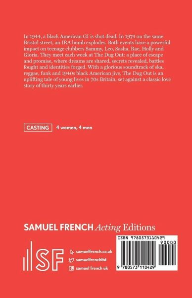 In 1944, a black American GI is shot dead. In 1974 on the same Bristol street, an IRA bomb explodes. Both events have a powerful impact on teenage clubbers Sammy, Leo, Sasha, Rae, Holly and Gloria. They meet each week at The Dug Out: a place of escape and promise, where dreams are shared, secrets revealed, battles fought and identities forged. With a glorious soundtrack of ska, reggae, funk and 1940s black American jive, The Dug Out is an uplifting tale of young lives in 70s Britain, set against a classic love story of thirty years earlier.4 women, 4 men