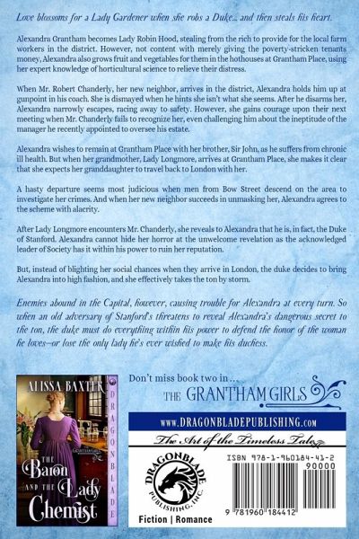 Love blossoms for a Lady Gardener when she robs a Duke... and then steals his heart. Alexandra Grantham becomes Lady Robin Hood, stealing from the rich to provide for the local farm workers in the district. However, not content with merely giving the poverty-stricken tenants money, Alexandra also grows fruit and vegetables for them in the hothouses at Grantham Place, using her expert knowledge of horticultural science to relieve their distress. When Mr. Robert Chanderly, her new neighbor, arrives in the district, Alexandra holds him up at gunpoint in his coach. She is dismayed when he hints she isn't what she seems. After he disarms her, Alexandra narrowly escapes, racing away to safety. However, she gains courage upon their next meeting when Mr. Chanderly fails to recognize her, even challenging him about the ineptitude of the manager he recently appointed to oversee his estate. Alexandra wishes to remain at Grantham Place with her brother, Sir John, as he suffers from chronic ill health. But when her grandmother, Lady Longmore, arrives at Grantham Place, she makes it clear that she expects her granddaughter to travel back to London with her. A hasty departure seems most judicious when men from Bow Street descend on the area to investigate her crimes. And when her new neighbor succeeds in unmasking her, Alexandra agrees to the scheme with alacrity. After Lady Longmore encounters Mr. Chanderly, she reveals to Alexandra that he is, in fact, the Duke of Stanford. Alexandra cannot hide her horror at the unwelcome revelation as the acknowledged leader of Society has it within his power to ruin her reputation. But, instead of blighting her social chances when they arrive in London, the duke decides to bring Alexandra into high fashion, and she effectively takes the ton by storm. Enemies abound in the Capital, however, causing trouble for Alexandra at every turn. So when an old adversary of Stanford's threatens to reveal Alexandra's dangerous secret to the ton, the duke must do everything within his power to defend the honor of the woman he loves-or lose the only lady he's ever wished to make his duchess. Note: This series is part of Dragonblade's Sweet Dreams line, so this is a sweet, wholesome Historical Romance where passion beyond the bedroom door is left to the reader's imagination. The Grantham Girls The Duke and the Lady Gardener The Baron and the Lady Chemist The Lord and the Lady Astronomer *Note: The Duke and the Lady Gardener was previously published as The Dashing Debutante. This second edition contains new material for readers to enjoy.
