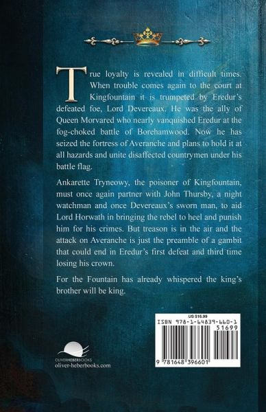 From Wall Street Journal bestselling author Jeff Wheeler... True loyalty is revealed in difficult times. When trouble comes again to the court at Kingfountain it is trumpeted by Eredur's defeated foe, Lord Devereaux. He was the ally of Queen Morvared who nearly vanquished Eredur at the fog-choked battle of Borehamwood. Now he has seized the fortress of Averanche and plans to hold it at all hazards and unite disaffected countrymen under his battle flag. Ankarette Tryneowy, the poisoner of Kingfountain, must once again partner with John Thursby, a night watchman and once Devereaux's sworn man, to aid Lord Horwath in bringing the rebel to heel and punish him for his crimes. But treason is in the air and the attack on Averanche is just the preamble of a gambit that could end in Eredur's first defeat and third time losing his crown. For the Fountain has already whispered the king's brother will be king.