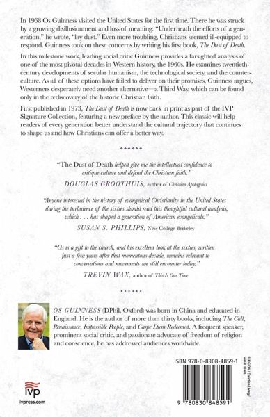 In 1968, at the climax of the sixties, Os Guinness visited the United States for the first time. There he was struck by an impression he'd already felt in England and elsewhere: beneath all the idealism and struggle for freedom was a growing disillusionment and loss of meaning. "Underneath the efforts of a generation," he wrote, "lay dust." Even more troubling, Christians seemed uninformed about the cultural shifts and ill-equipped to respond. Guinness took on these concerns by writing his first book, The Dust of Death. In this milestone work, leading social critic Guinness provides a wide-ranging, farsighted analysis of one of the most pivotal decades in Western history, the 1960s. He examines the twentieth-century developments of secular humanism, the technological society, and the alternatives offered by the counterculture, including radical politics, Eastern religions, and psychedelic drugs. As all of these options have increasingly failed to deliver on their promises, Guinness argues, Westerners desperately need another alternative-a Third Way. This way "holds the promise of realism without despair, involvement without frustration, hope without romanticism." It offers a stronger humanism, one with a solid basis for its ideals, combining truth and beauty. And this Third Way can be found only in the rediscovery and revival of the historic Christian faith. First published in 1973, The Dust of Death is now back in print as part of the IVP Signature Collection, featuring a new design and new preface by the author. This classic will help readers of every generation better understand the cultural trajectory that continues to shape us and how Christians can still offer a better way.