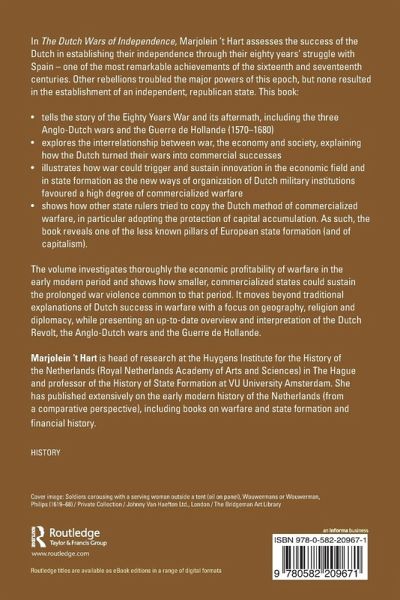 In The Dutch Wars of Independence, Marjolein 't Hart assesses the success of the Dutch in establishing their independence through their eighty years struggle with Spain - one of the most remarkable achievements of the sixteenth and seventeenth centuries. Other rebellions troubled mighty powers of this epoch, but none resulted in the establishment of an independent, republican state. This book: tells the story of the Eighty Years War and its aftermath, including the three Anglo-Dutch Wars and the Guerre de Hollande (1570-1680). explores the interrelation between war, economy and society, explaining how the Dutch could turn their wars into commercial successes. illustrates how war could trigger and sustain innovations in the field of economy and state formation ; the new ways of organization of Dutch military institutions favoured a high degree of commercialized warfare. shows how other state rulers tried to copy the Dutch way of commercialized warfare, in particular in taking up the protection for capital accumulation. As such, the book unravels one of the unknown pillars of European state formation (and of capitalism). The volume investigates thoroughly the economic profitability of warfare in the early modern period and shows how smaller, commercialized states could sustain prolonged war violence common to that period. It moves beyond traditional explanations of Dutch success in warfare focusing on geography, religion, diplomacy while presenting an up-to-date overview and interpretation of the Dutch Revolt, the Anglo-Dutch Wars and the Guerre de Hollande.