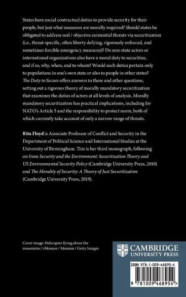 Rita Floyd is Associate Professor in Conflict and Security in the Department of Political Science and International Studies at the University of Birmingham. This is her third monograph following on from Security and the Environment: Securitisation Theory and US Environmental Security Policy (Cambridge, 2010) and The Morality of Security: A Theory of Just Securitization (Cambridge, 2019).