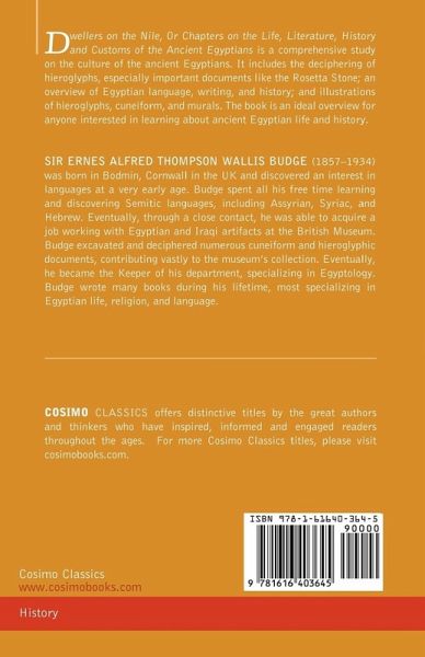 Dwellers on the Nile, Or Chapters on the Life, Literature, History and Customs of the Ancient Egyptians is a comprehensive study on the culture of the ancient Egyptians. It includes the deciphering of hieroglyphs, especially important documents like the Rosetta Stone; an overview of Egyptian language, writing, and history; and illustrations of hieroglyphs, cuneiform, and murals. The book is an ideal overview for anyone interested in learning about ancient Egyptian life and history. SIR ERNES ALFRED THOMPSON WALLIS BUDGE (1857¿1934) was born in Bodmin, Cornwall in the UK and discovered an interest in languages at a very early age. Budge spent all his free time learning and discovering Semitic languages, including Assyrian, Syriac, and Hebrew. Eventually, through a close contact, he was able to acquire a job working with Egyptian and Iraqi artifacts at the British Museum. Budge excavated and deciphered numerous cuneiform and hieroglyphic documents, contributing vastly to the museum¿s collection. Eventually, he became the Keeper of his department, specializing in Egyptology. Budge wrote many books during his lifetime, most specializing in Egyptian life, religion, and language.