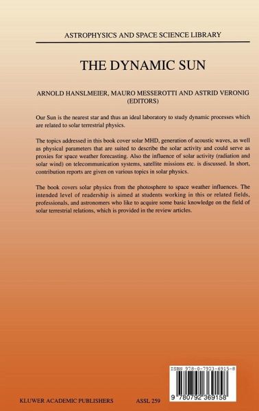 Our Sun is the nearest star and thus an ideal laboratory to study dynamic processes which are related to solar terrestrial physics. The topics addressed in this book cover solar MHD and generation of acoustic waves, as well as physical parameters that are suited to describing solar activity and could serve as proxies for space weather forecasting. The influence of solar activity (radiation and solar wind) on telecommunication systems, satellite missions etc. is also discussed. In short, contribution reports are given on various topics in solar physics. The book covers solar physics from the…mehr