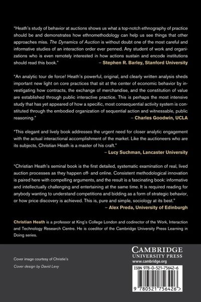 Each year art and antiques worth many billions of pounds are sold at auction. These auctions consist of numerous, intense episodes of social interaction through which the price of goods rapidly escalates until sold on the strike of a hammer. In this book, Christian Heath examines the fine details of interaction that arises at auctions, the talk and visible conduct of the participants and their use of various tools and technologies. He explores how auctioneers, buyers and their representatives are able to transact the sale of diversely priced goods in just seconds. Heath addresses how order, trust and competition are established at auctions and demonstrates how an economic institution of some global importance is founded upon embodied action and interaction. The analysis is based on video recordings of sales of art and antiques gathered within a range of national and international auction houses in Europe and the United States.