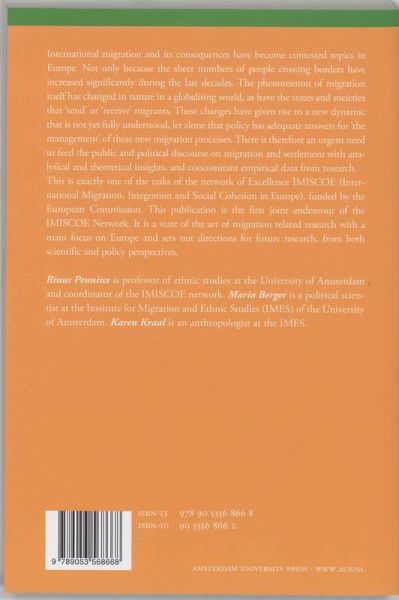 Karen Kraal is an anthropologist affiliated with the IMES and responsible for the communication and dissemination programme of IMISCOE. Rinus Penninx (ed.) is professor of ethnic studies at the University of Amsterdam, and co-ordinator of the IMISCOE Network of Excellence (International Migration, Integration and Social Cohesion in Europe). He also holds the European co-chair of International Metropolis, a worldwide network of research and policy institutions relating to immigration and integration in large cities. Maria Berger is a political scientist and a research advisor for the city of Delft.