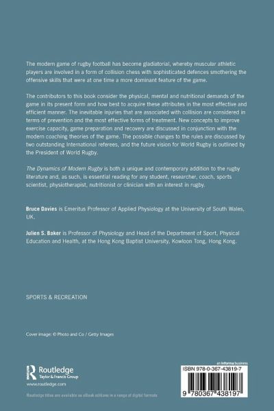 The Dynamics of Modern Rugby is a unique addition to the rugby literature. The contributors consider the physical, mental and nutritional demands of the game, injury prevention, and treatment. New concepts to improve exercise capacity, game preparation and recovery are discussed along with the modern coaching theories.