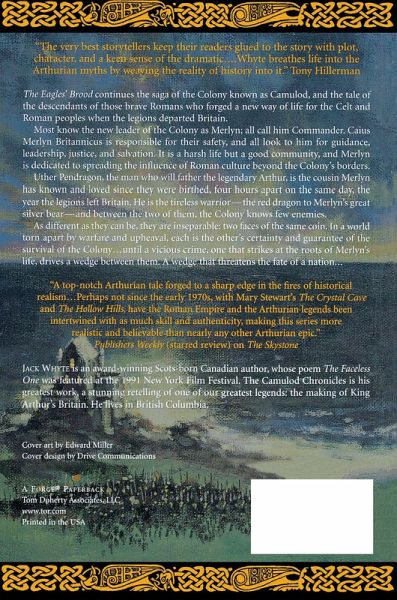 The Eagles' Brood by Jack Whyte continues the saga of the Colony known as Camulod, and the tale of the descendants of those brave Romans who forged a new way of life for the Celt and Roman peoples when the Roman legions departed Britain. Most know the new leader of the Colony as Merlyn; all call him Commander. Cauis Merlyn Britannicus is responsible for their safety, and all look to him for guidance, leadership, justice, and salvation. It is a harsh life but a good community, and Merlyn is dedicated to spreading the influence of Roman culture beyond the Colony's borders. Uther Pendragon, the man who will father the legendary Arthur, is the cousin Merlyn has known and loved since they were birthed, four hours apart on the same day, the year the legions left Britain. He is the tireless warrior--the red dragon to Merlyn's great silver bear--and between the two of them, the Colony knows few enemies. As different as they can be, they are inseparable: two faces of the same coin. In a world torn apart by warfare and upheaval, each is the other's certainty and guarantee of the survival of the Colony . . . until a vicious crime, one that strikes at the roots of Merlyn's life, drives a wedge between them. A wedge that threatens the fate of a nation . . . .