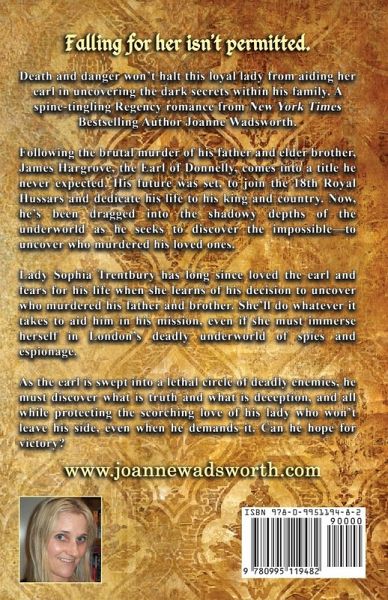 NOTE: This is the Large Print paperback edition with Atkinson Hyperlegible 18 point font. Death and danger won't halt this loyal lady from aiding her earl in uncovering the dark secrets within his family. A spine-tingling Regency romance from New York Times Bestselling Author Joanne Wadsworth. Falling for her isn't permitted. Following the brutal murder of his father and elder brother, James Hargrove, the Earl of Donnelly, comes into a title he never expected. His future was set, to join the 18th Royal Hussars and dedicate his life to his king and country. Now, he's been dragged into the…mehr