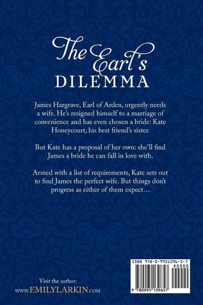 He's running out of time... James Hargrave, Earl of Arden, urgently needs a wife. He's resigned himself to a marriage of convenience and has even chosen a bride: Kate Honeycourt, his best friend's sister. Kate has been on the shelf for years. Why, then, does she so firmly turn him down? Surely she can't be holding out for a love match? But Kate has a proposal of her own: she'll find James a bride he can fall in love with. Armed with a list of requirements, Kate sets out to find James the perfect wife. But things don't progress as either of them expect... A delightfully sexy and heartwarming friends-to-lovers Regency romance from award-winning and USA Today bestselling author Emily Larkin. Length: Full-length novel of 68,000 words Heat level: A Regency romance with a steamy love scene If you love page-turning historical romances brimming with emotion, humor, and captivating characters, then this is the novel for you!