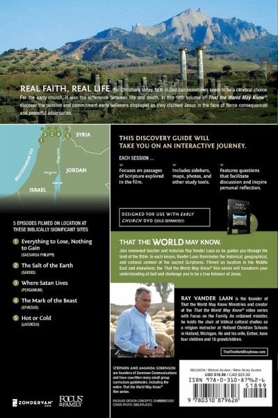 Uncover the passion and commitment early believers displayed as they claimed Jesus in the face of fierce consequences and powerful adversaries. In the fifth volume of the series That The World May Know, travel with teacher and historian Ray Vander Laan to places like Caesarea Philippi, Sardis, Pergamum, Ephesus, and Laodicea in order to gain a new understanding of the Bible that will ground your convictions and transform your life. This discovery guide includes passages of Scripture explored in the DVD (sold separately); questions for discussion and personal reflection; personal Bible studies to help you deepen your learning experience between sessions; as well as sidebars, maps, photos, and other study tools. Lessons include: Everything to Lose, Nothing to Gain - Filmed in Caesarea Philippi The Salt of the Earth - Filmed in Sardis Where Satan Lives - Filmed in Pergamum The Mark of the Beast - Filmed in Ephesus Hot or Cold - Filmed in Laodicea Designed for use with The Early Church Video Study (sold separately). _______________ THAT THE WORLD MAY KNOW Join renowned teacher and historian Ray Vander Laan as he guides you through the land of the Bible. In each lesson, Vander Laan illuminates the historical, geographical, and cultural context of the sacred Scriptures. Filmed on location in the Middle East and elsewhere, the That the World May Know film series will transform your understanding of God and challenge you to be a true follower of Jesus.