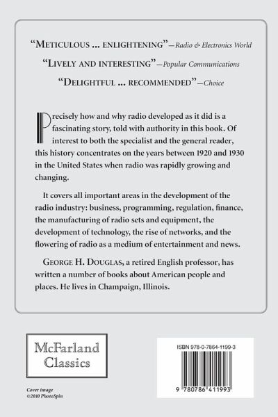 Precisely how and why radio developed as it did is a fascinating story, told with authority in this book. Of interest to both the specialist and the general reader, this history concentrates on the years between 1920 and 1930 in the United States when radio was rapidly growing and changing. It covers all important areas in the development of the radio industry: business, programming, regulation, finance, the manufacturing of radio sets and equipment, the development of technology, the rise of networks, and the flowering of radio as a medium of entertainment and news.