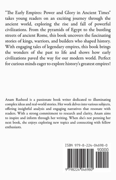 "The Early Empires: Power and Glory in Ancient Times" takes young readers on an exciting journey through the ancient world, exploring the rise and fall of powerful civilizations. From the pyramids of Egypt to the bustling streets of ancient Rome, this book uncovers the fascinating stories of kings, warriors, and builders who shaped history. With engaging tales of legendary empires, this book brings the wonders of the past to life and shows how early civilizations paved the way for our modern world. Perfect for curious minds eager to explore history's greatest empires!
