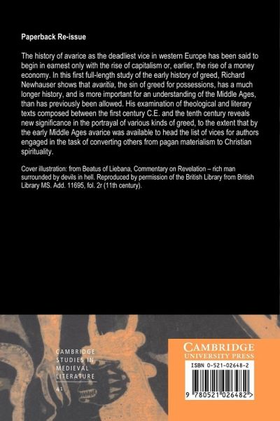 The history of avarice as the deadliest vice in western Europe has been said to begin in earnest only with the rise of capitalism or, earlier, the rise of a money economy. In this first full-length study of the early history of greed, Richard Newhauser shows that avaritia, the sin of greed for possessions, has a much longer history, and is more important for an understanding of the Middle Ages, than has previously been allowed. His examination of theological and literary texts composed between the first century CE and the tenth century reveals new significance in the portrayal of various kinds of greed, to the extent that by the early Middle Ages avarice was available to head the list of vices for authors engaged in the task of converting others from pagan materialism to Christian spirituality.
