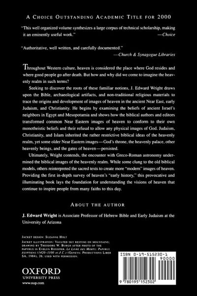 When we think of "heaven," we generally conjure up positive, blissful images. Heaven is, after all, where God is and where good people go after death to receive their reward. But how and why did Western cultures come to imagine the heavenly realm in such terms? Why is heaven usually thought to be "up there," far beyond the visible sky? And what is the source of the idea that the post mortem abode of the righteous is in this heavenly realm with God? Seeking to discover the roots of these familiar notions, this volume traces the backgrounds, origin, and development of early Jewish and Christian speculation about the heavenly realm -- where it is, what it looks like, and who its inhabitants are. Wright begins his study with an examination of the beliefs of ancient Israel's neighbors Egypt and Mesopotamia, reconstructing the intellectual context in which the earliest biblical images of heaven arose. A detailed analysis of the Hebrew biblical texts themselves then reveals that the Israelites were deeply influenced by images drawn from the surrounding cultures. Wright goes on to examine Persian and Greco-Roman beliefs, thus setting the stage for his consideration of early Jewish and Christian images, which he shows to have been formed in the struggle to integrate traditional biblical imagery with the newer Hellenistic ideas about the cosmos. In a final chapter Wright offers a brief survey of how later Jewish, Christian, and Islamic traditions envisioned the heavenly realms. Accessible to a wide range of readers, this provocative book will interest anyone who is curious about the origins of this extraordinarily pervasive and influential idea.