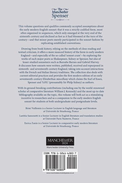 This volume updates current assumptions about the early modern English sonnet and its reception and inclusion in poetic collections. It deals both with major (Shakespeare, Sidney, Spenser) and minor (Harvey, Barnes) sonneteers, and includes the first modern edition of a 1603 printed miscellany, The Muses Garland. -- .