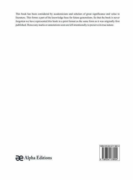 This book has been considered by academicians and scholars of great significance and value to literature. This forms a part of the knowledge base for future generations. So that the book is never forgotten we have represented this book in a print format as the same form as it was originally first published. Hence any marks or annotations seen are left intentionally to preserve its true nature.
