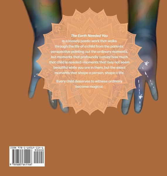 The Earth Needed You is a loosely poetic work that walks through the life of a child from the parents' perspective pointing out the ordinary moments, but moments that profoundly convey how much that child is needed; moments that may not seem beautiful while you are in them, but the exact moments that shape a person, shape a life. Every child deserves to witness ordinary become magical.