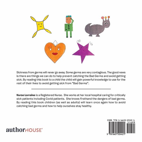 Sickness from germs will never go away. Some germs are very contagious. The good news is there are things we can do to help prevent catching the Bad Germs and avoid getting sick. By reading this book to a child the child will gain powerful knowledge to use for the rest of their lives to avoid getting sick from "Bad Germs".