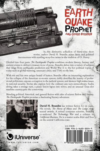 In this distinctive collection of thirty-nine short stories, author David H. Brandin mixes satire and political incorrectness with startling story-line twists in the tradition of O. Henry. Divided into four parts, The Earthquake Prophet combines modern history, fantasy, and current events to deliver a treasure trove of prose. Brandin delves into a variety of subjects that range from earthquake prediction and World War II to the hot political topics of today such as global warming, sanctuary cities, and TSA's no-¿y lists. With wit and his own unique brand of humor, Brandin öers an interesting explanation for the collapse of the American economic system; deftly describes the inanity of professional politicians; exposes corruption in the judicial system; and skewers high-stakes issues in national security. Stories also explore how the ordinary can turn extraordinary. Scuba diving takes a strange turn, a piano lesson lapses into terror, and an unusual Texas slot machine creates quite the controversy. Blending political, historical, and general ¿ction with tales of science ¿ction and fantasy, The Earthquake Prophet promises a fascinating literary adventure.