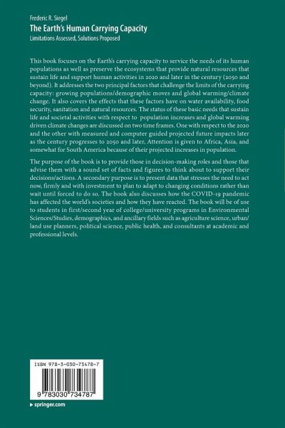 This book focuses on the Earth's carrying capacity to service the needs of its human populations as well as preserve the ecosystems that provide natural resources that sustain life and support human activities in 2020 and later in the century (2050 and beyond). It addresses the two principal factors that challenge the limits of the carrying capacity: growing populations/demographic moves and global warming/climate change. It also covers the effects that these factors have on water availability, food security, sanitation and natural resources. The status of these basic needs that sustain life and societal activities with respect to population increases and global warming driven climate changes are discussed on two time frames. One with respect to the 2020 and the other with measured and computer guided projected future impacts later as the century progresses to 2050 and later, Attention is given to Africa, Asia, and somewhat for South America because of their projected increases in population. The purpose of the book is to provide those in decision-making roles and those that advise them with a sound set of facts and figures to think about to support their decisions/actions. A secondary purpose is to present data that stresses the need to act now, firmly and with investment to plan to adapt to changing conditions rather than wait until forced to do so. The book also discusses how the COVID-19 pandemic has affected the world's societies and how they have reacted. The book will be of use to students in first/second year of college/university programs in Environmental Sciences/Studies, demographics, and ancillary fields such as agriculture science, urban/land use planners, political science, public health, and consultants at academic and professional levels.