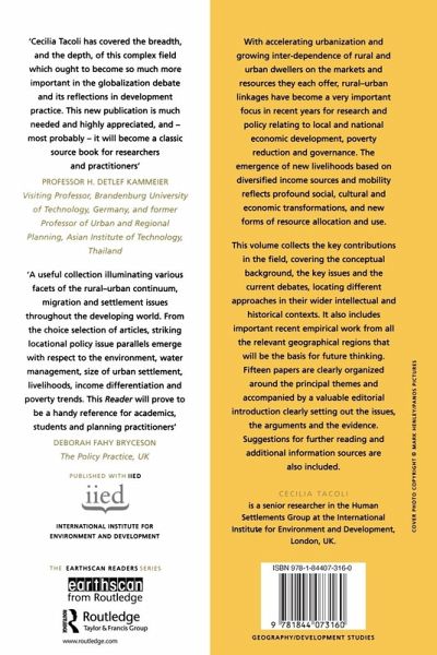 With accelerating urbanization and growing inter-dependence of rural and urban dwellers on the markets and resources they each offer, rural urban linkages have become a very important focus in recent years for research and policy relating to local and national economic development, poverty reduction and governance. The emergence of new livelihoods based on diversified income sources and mobility reflects profound social, cultural and economic transformations, and new forms of resource allocation and use. This volume collects the key contributions in the field, covering the conceptual background, the key issues and the current debates, locating different approaches in their wider intellectual and historical contexts. It also includes important recent empirical work from all the relevant geographical regions that that will be the basis for future thinking. Fifteen papers are clearly organized around the principal themes and accompanied by a valuable editorial introduction clearly setting out the issues, the arguments and the evidence. Suggestions for further reading and additional information sources are also included. Published with IIED.